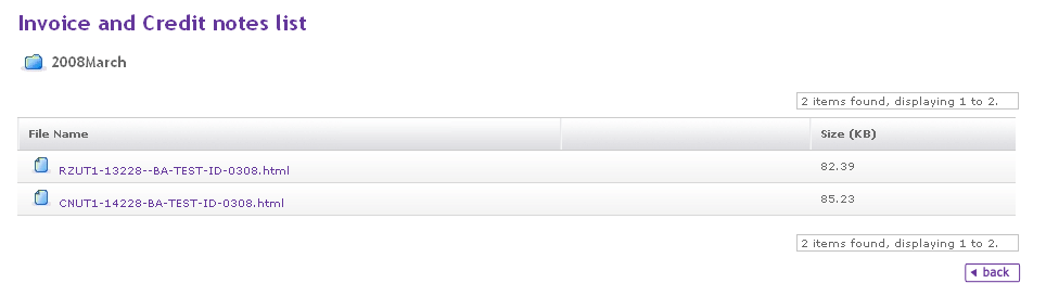 7. Click on the back button to go to the Invoices - Listed by month screen.